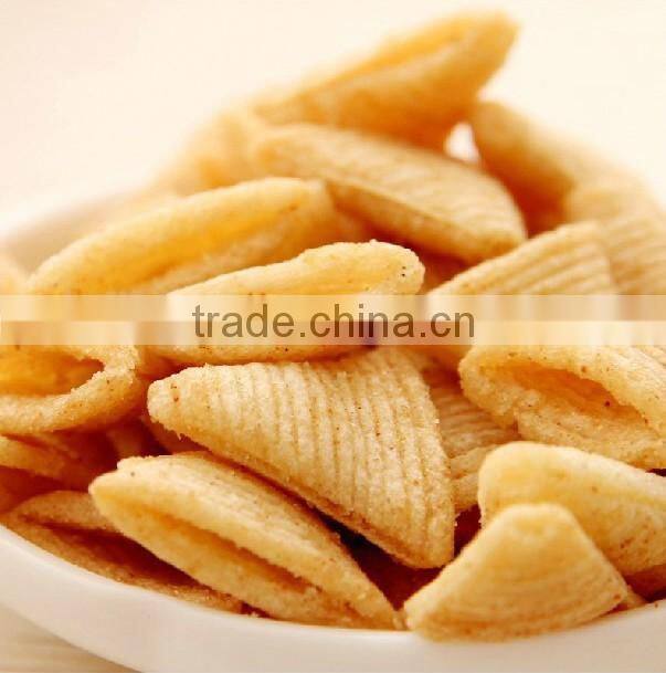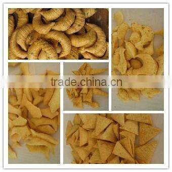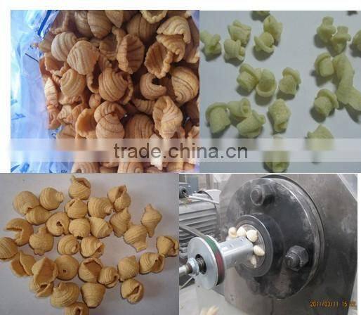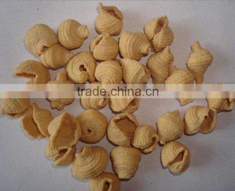 Using potato starch as raw material, after extruding, curing, extrusion were cut off from the mold.Produce shell, screw, square tube, round tube novel designs’ product. After dry fried puffing again, becomes a crisp delicious, delicious snack food. With flour as raw material, not directly by the dry fried is the hot pizza rolls, intestine on the market at present.