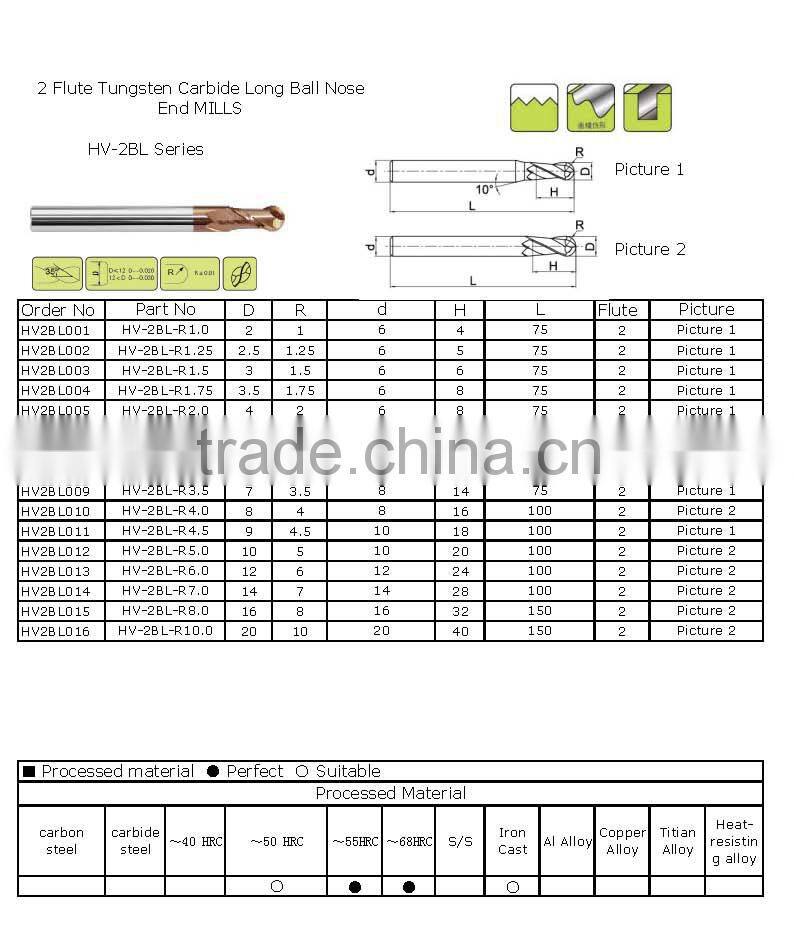 | Wholesale High Quality Fast Feed Precision Ball Nose Carbide End Mills For Wood |