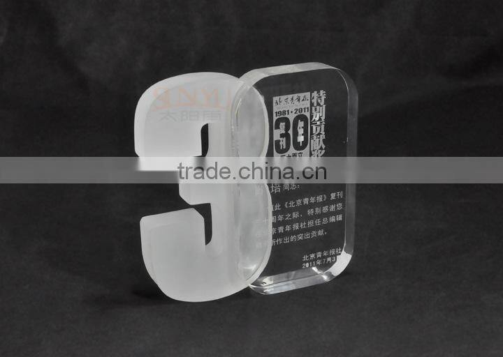 Custom Numeral Shaped Frosted Acrylic Memorable Trophy and New Design Awards