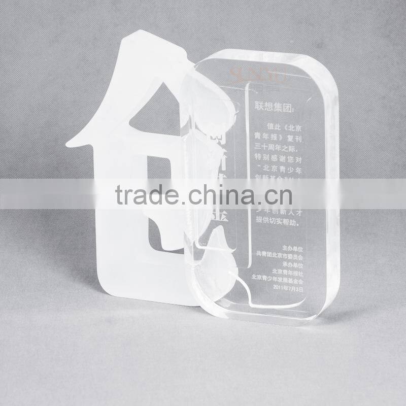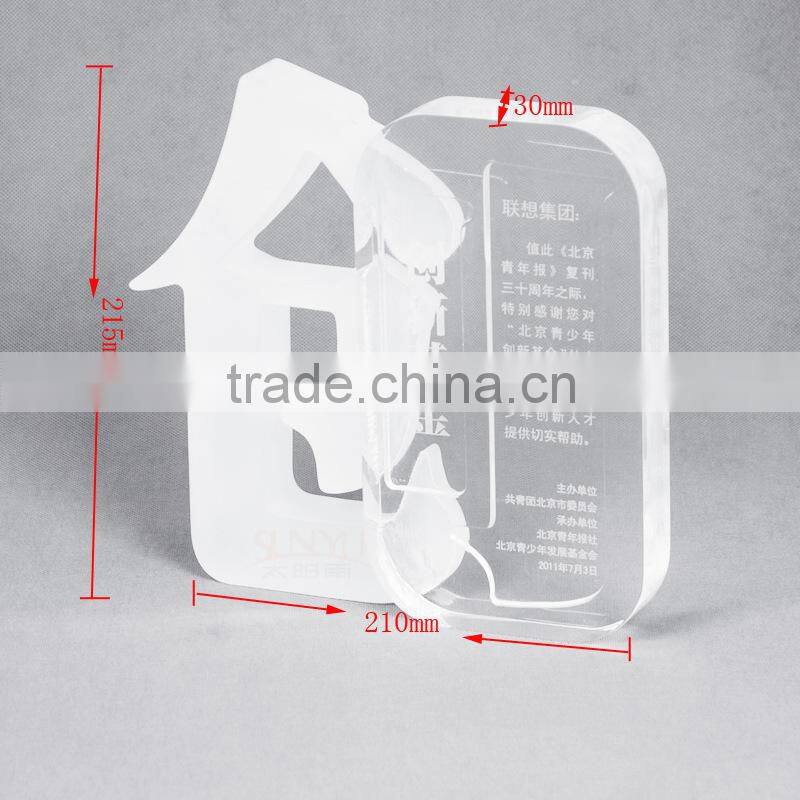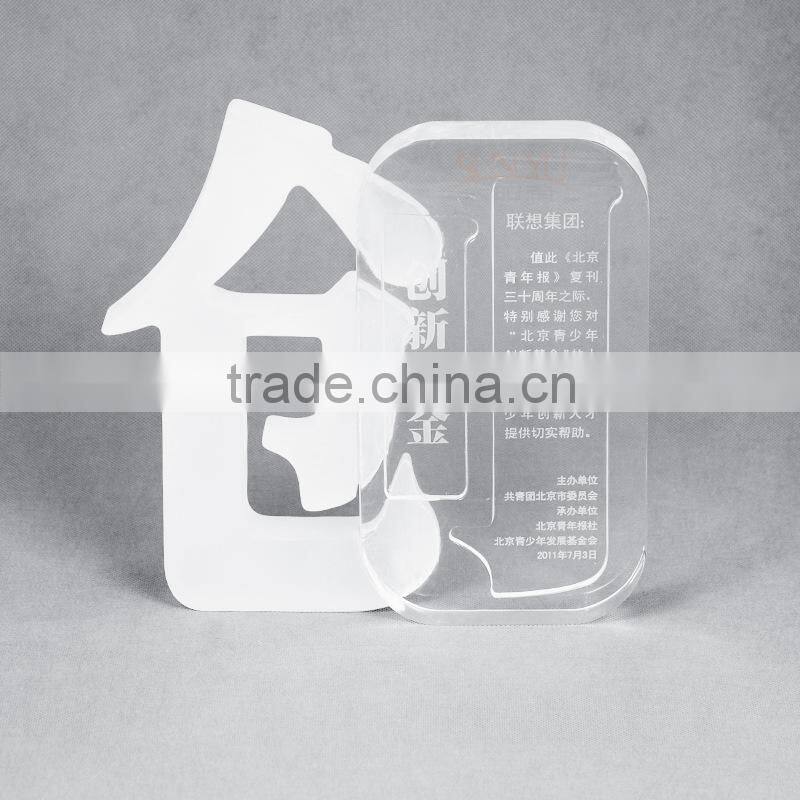 New Design Chinese Characters Shaped Frosted Acrylic Trophy and Awards