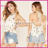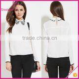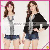 Fashion Back Cut Out Woven Embroidered Blouse New 2016