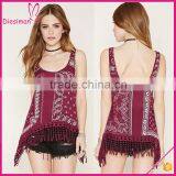 Crochet Tassel Hem Paisley Print Women Custom Tank Top Manufacturer