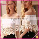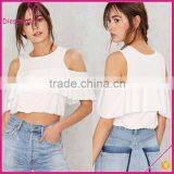 White Off The Shoulder Cut Out Short Sleeve Custom Ladies Sexy Crop Top Sexy