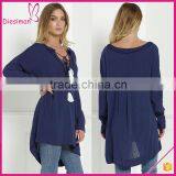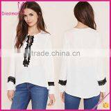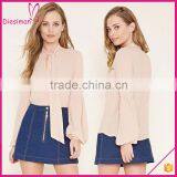 Long Sleeve Tie-Neck Rayon Latest Fashion Blouse Design 2016