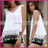 White Fringe Spliced Cami Spaghetti Strap Camisole Tops, Ladies Spaghetti Strap Tops Women