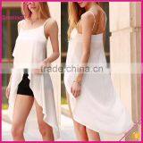 Ladies New Fashion Top Solid Color Irregular Hem Spaghetti Straps Short Front Long Back Chiffon Latest Fashion Long Top Design
