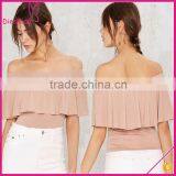 Summer Layered Should Color Rayon Off Shoulder Ruffle Top