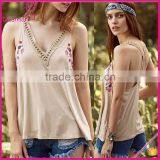 Embroidery Hollow Out Cotton Sexy V Neck Ladies Fancy Sleeveless Tops Photos