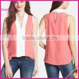 New Fashion Color Block Sleeveless Slim Sexy Latest Blouse Design 2016