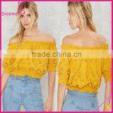 Short Sleeve Elastc Neck Eyelet off Shoulder Tops Woman Blouses 2016 New Designs Top