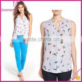 Women Print Pleat Back Split Neck Sexy Sleeveless Blouse Patterns