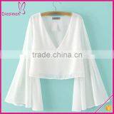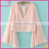 Pink Bell Sleeve Fashion Chiffon Blouse European Fashion Sexy Deep V Neck Blouses for Women