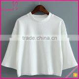White Round Neck Elbow Sleeve Blouse Loose Blouse