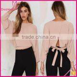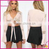 Ladies Bell Long Sleeve Sexy Wrap Crop Tops for Women 2016