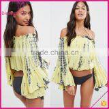 Surf Gypsy Tie Dye Off Shoulder Flare Bell Sleeve Blouse