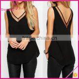 Classic Design Nice Neckline Cutout V Front Chiffon Latest Fashion Blouse Ladies