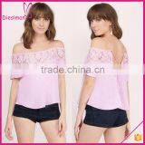 Short Sleeve off Shoulser Lace Top Design Chiffon 2016 Latest Blouse Design Styles