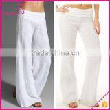 High Waist Solid Color White Women Linen Beach Pants