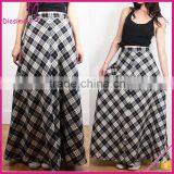 Latest Long Skirt Design 2016 Elegant Black and White Plaid Long Maxi Skirt