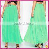 Solid Color Neon Sexy Long Chiffon Pleated Maxi Skirt