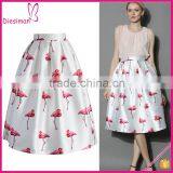 Stunning Ivory Custom Pink Flamingo Print Midi Skirt , New Arrivals Chic Flamingos Print Pleated A-line Skirt