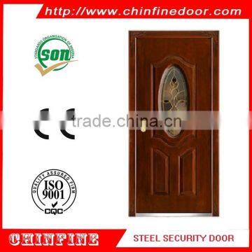 2. Cold-rolled steel door leaf and frame with heat transfer-printing, which looks natural wood grain(or powder coating). (steel sheet thickness available from0. 5mm~1mm for door leaf, and 1.0mm~2.0mm for door frame)