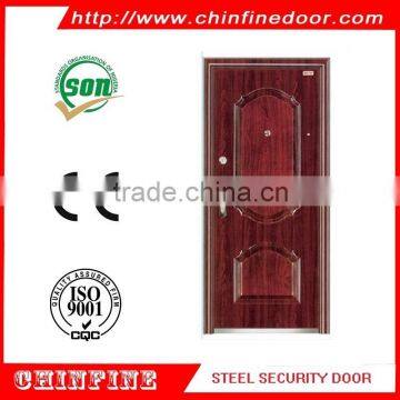 2. Cold-rolled steel door leaf and frame with heat transfer-printing, which looks natural wood grain(or powder coating). (steel sheet thickness available from0. 5mm~1mm for door leaf, and 1.0mm~2.0mm for door frame)