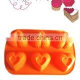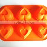 Microwave Oven Cake Pan Silicone Heart-Shape Muffin Pan Hearts Mold Desserts, Jello. 6 Cavity