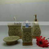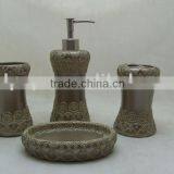 Hot Selling 4pcs Polyresin Bath Set With Embossed Lace