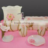 Favorable 6pcs Pink Flower Polyresin Bathroom Set