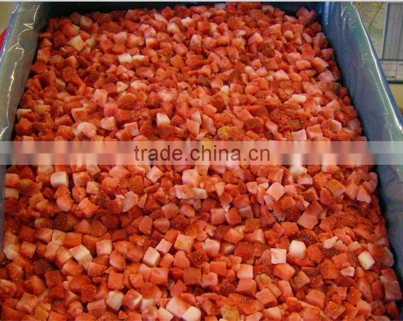 IQF strawberry dice:5*5mm,6*6mm,10*10mm,slice thickness:3-5mm,4-6mm,5-7mm,6-8mm,10kg/carton