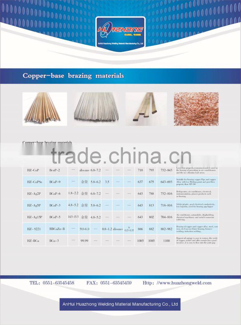 Anhui Huazhong Welding Material Manufacturing Co., Ltd is established in 2004, and located in Hefei——the central City of Anhui Province. We are specialized in manufacturing and producing brazing materials. Our main products include silver-based brazing filler metal, copper-based brazing filler metal, aluminum-based brazing filler metal and associated brazing flux, flux-cored welding wire etc. Our brazing flux products include: silver welding paste, silver welding powder, copper welding paste, copper welding powder, aluminum welding paste, aluminum welding powder, spot welding paste (water), etc. The available shape of brazing alloys are rod, ring, sheet, strip, wire etc.
