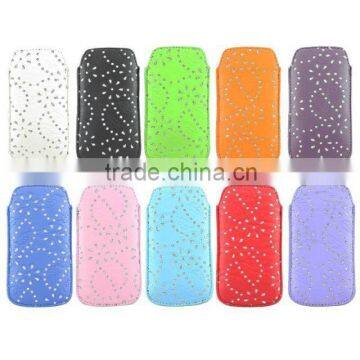 This pouch is made by PU leather, it can use for every models mobile phones. It's has a chain to let you easier to put the phone out. As this case is made by PU, it can more protecter form the water. We have many colors in this pouch, you can made what color you need
