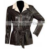 - Fashion New Arrival V-neck Corns Metal Leather Jacket Tight Black Zipper Short Women's Clothing