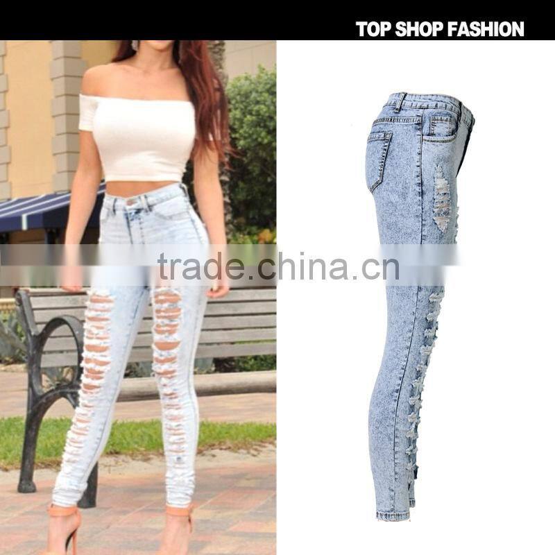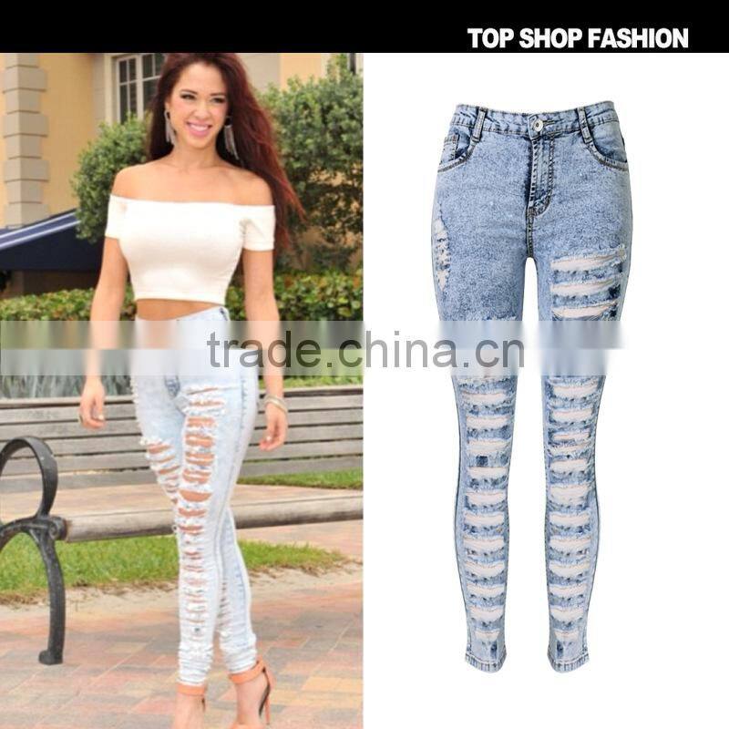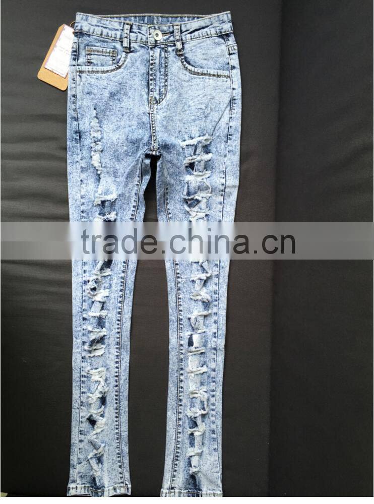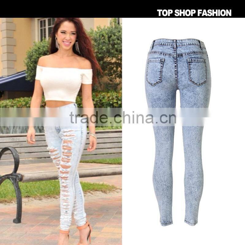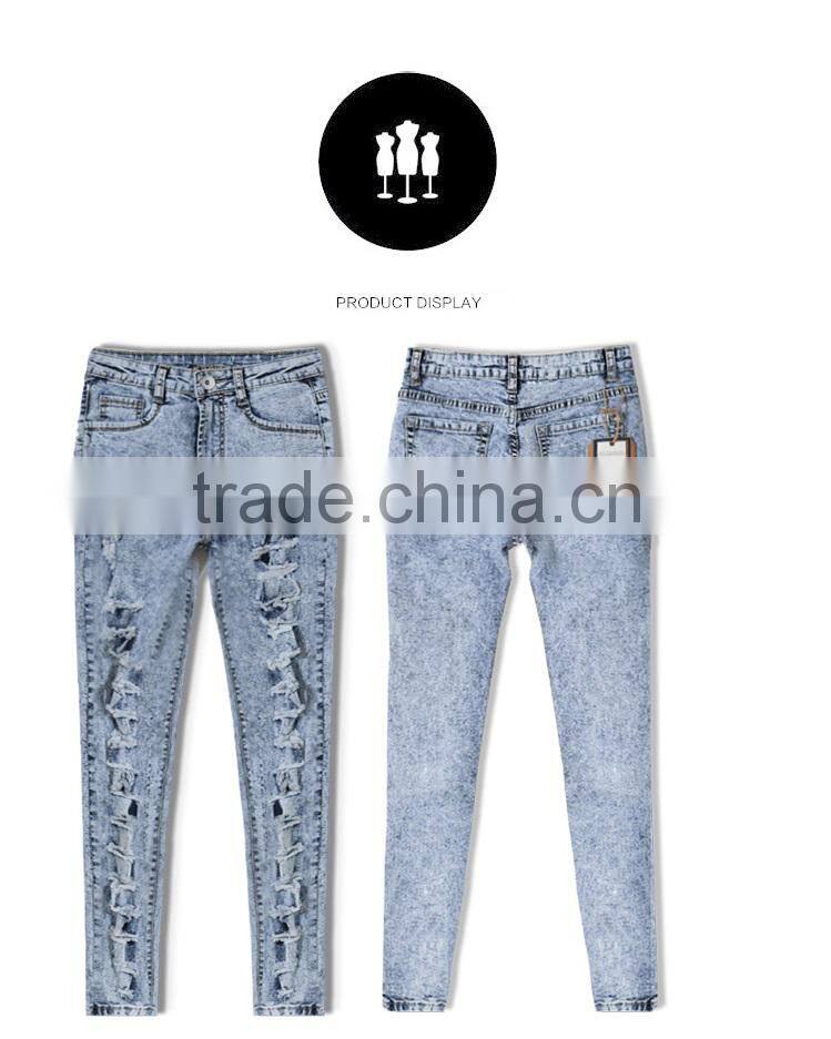 Sexy Female High Waist Snowflakes Jeans Feet Pants