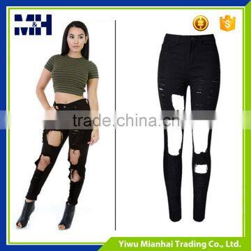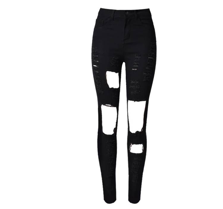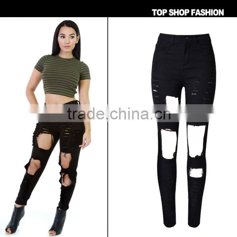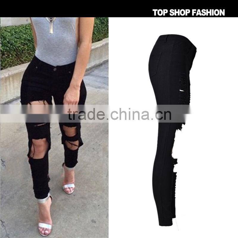 Irregular Hole Street Fashion Ladies Jeans Trousers