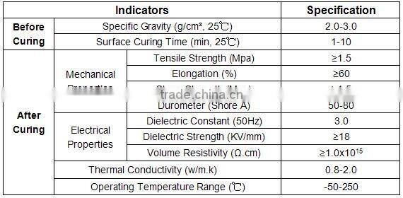 651 series are quick dry dealcoholization silicone rubber, single component type, with the advantages of neutral and non-corrosive, good insulation performance, moisture-proof, shock resistant, corona resistant and anti leakage of electricity, also with good heating conductive property and bonding positioning function, tensile strength is strong and adhesion property is good after curing, heat dissipation effect won’t lower because of gap contacting. They have good adhesion to metals and most of plastic, also with excellent resistance to cold and hot cycle performance after curing (-50---250℃).