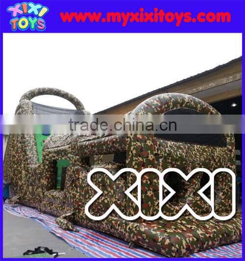 2016 hot sale Kids Army Outdoor Inflatable Obstacle Course Playground, Inflatable bouncer,inflatable fun city,inflatable sport games and advertising items,which are made of sewing machines.We call them “sewing inflatables“,they need air blower working constantly when you build it up,once the blower stop,the sewing inflatable will fall down.