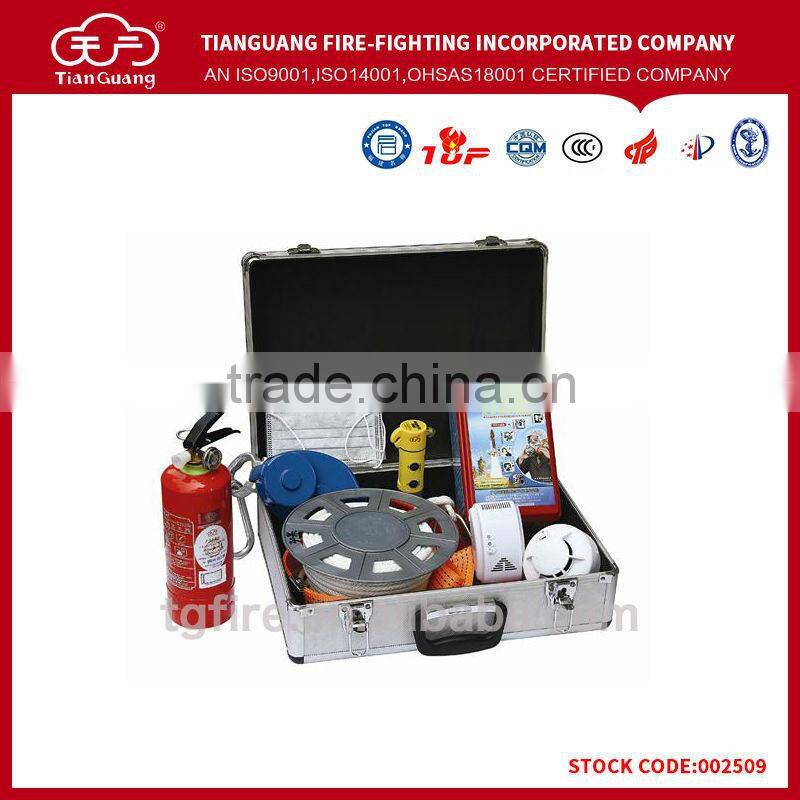 The household fire equipment is mainly composed of smoke detectors, gas detectors, water-based fire extinguishers, life-saving descent rescue device, gas masks, fire blanket, multi-function flashlight. The firefighters can found trapped more easily and take rescue measures.