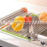 2016 Roll Up Stainless Steel Silicone Handy Drying Dish Drainer Rack
