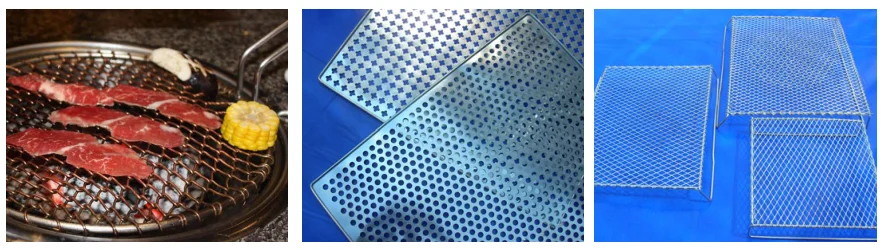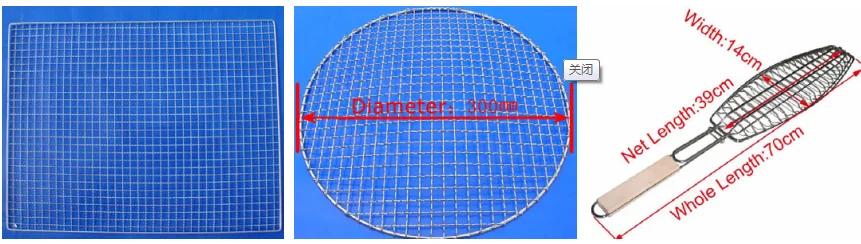 Just as its name implies is used for barbecue food mesh barbecue net. Divided into one-time Barbecue net and repetitive use barbecue net. It has a high temperature constant Form, not rust, avirulent insipidity, convenient to use. Mainly used in hotel, barbecue Shop, picnics, camping, military, tourism activities such as pasta, meat, fish, barbecue, Steamed, smoked, etc.