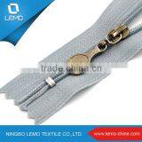 Fashion Aluminium Zipper, Antique Brass Metal Zipper