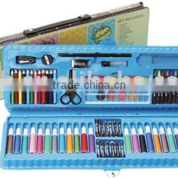 water color set conbtains 92pcs items, such as water color pen, color pencile, scissor,oil crayon, pastel, palette, glue, eraser,stapler ruler, sharpener,water color cake.Also, we can do as you requeste, fast production.