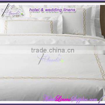 a) hotel bed linens: our premium hotel bedding sheets, duvet covers, pillow cases are made of finest and durable fabric, which are available in any thread counts( from 180TC, 200TC, 250TC, 300TC to 1000TC), any woven pattern (plain percale, striped, sateen, dobby, jacquard) and any sizes( twin, full, queen, king...). Our hotel bedding items also include duvets, pillows, mattress pads, blanket, cushions, cushion cover, bed spread, bed runners...