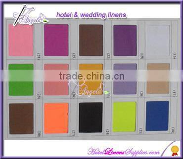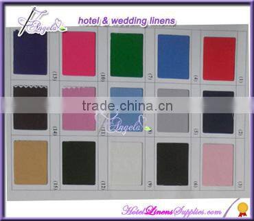 c) wedding chair covers, sashes, table linens: our wedding chair covers, tablecloths, skirts can be made of basic poly fabrics, satin fabric or spandex stretch fabric. Our table runners sashes & overlays can be made of organza or satin. A full range of popular solid colors, like, white, ivory, black, burgundy...) are available.