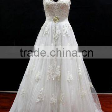 New Beading Lace Appliques Tulle Drapping Belt With Beading Trim Sweetheart Wedding Dress