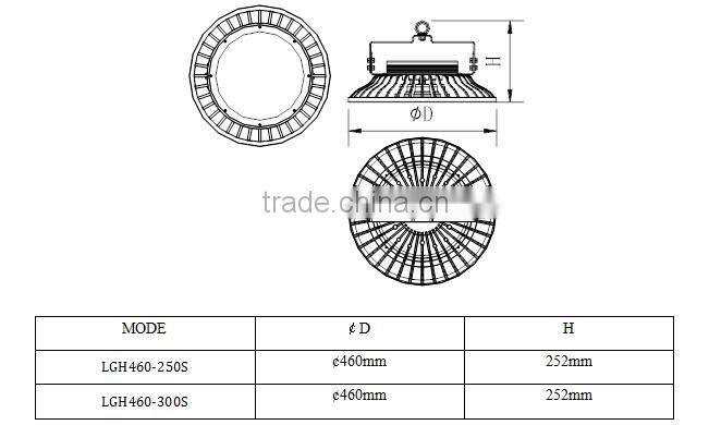 Dimension of the led high bay light