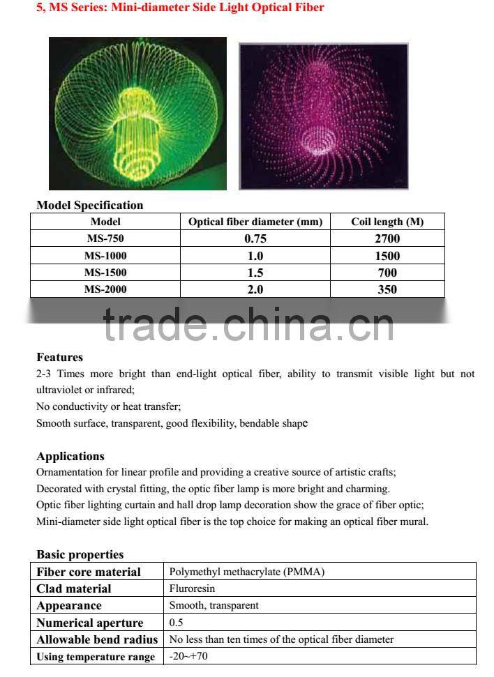 PVC Jacket Litting Optical Fiber, End Glow Fiber Optics, for Showcase and Sky Starry and Suana Room Lighting Decoration