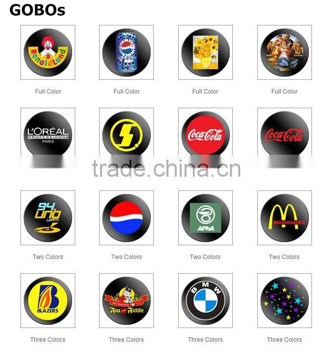 We also make customized glass gobos as per client’s artworks. The gobo can be