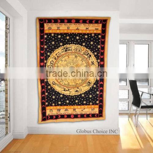 Indian Horoscope Zodiac Wall Hanging Tapestry is a rich scientific proven Astronomy art which is beautifully multi colour Tapestry Print on Stone wash tye n dye background impression. This wall hanging Tapestry prints are a great way to add colour to your bed, ceiling, and wall,piece of art, these are appropriate for your living room, bed room as a wall hanging. It will add an ethnic feel to your room with this cotton handmade wall hanging...